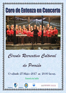 O vindeiro sábado 27 de Maio 2017, as 8 da tarde, estaremos no Círculo Recreativo e Cultural do Porriño, onde ofreceremos un concerto de música variada do noso repertorio.
